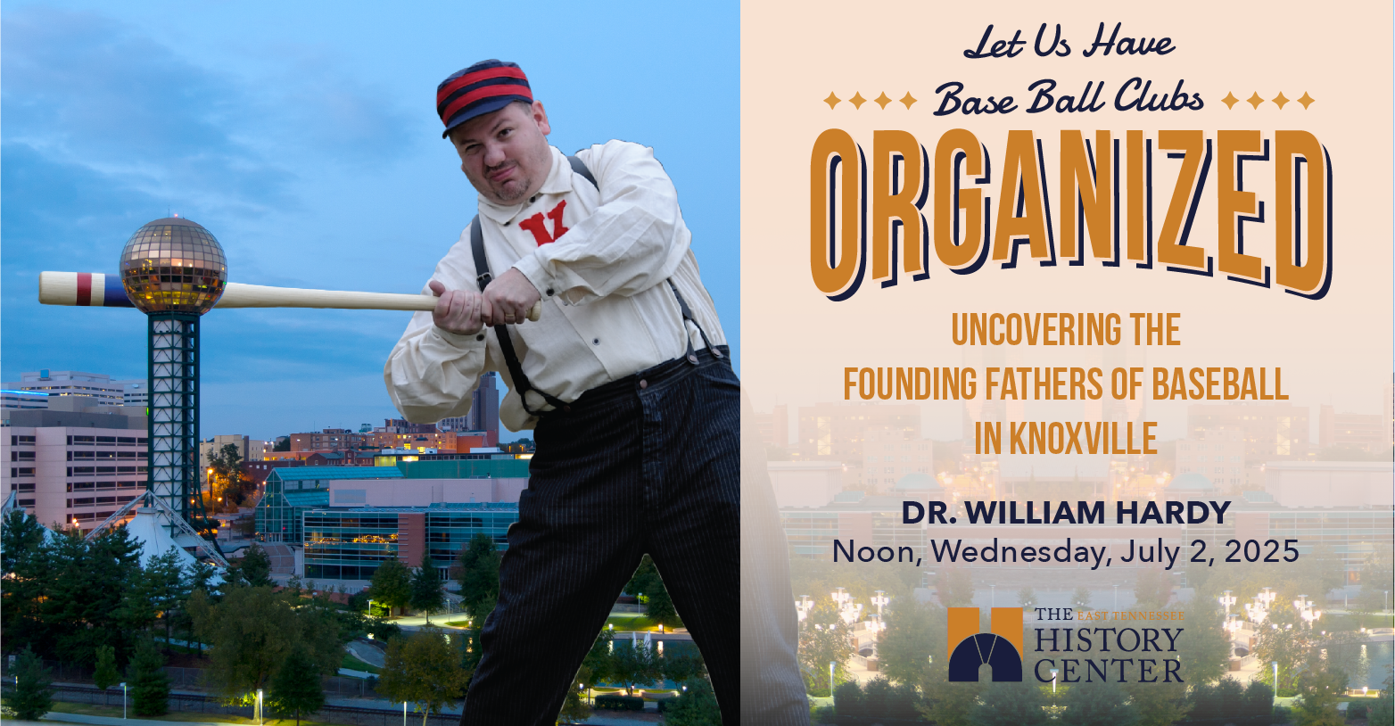 02 July 2025Dr. Hardy will open the historian’s toolbox and provide insight into the sources that he used to identify the founding fathers of baseball in Knoxville. He will also recount the first games played between intercity rivals, as well as those played against visiting clubs from Chattanooga and Atlanta, Georgia.