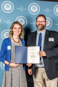 Dakota Blade Carmichael received the Community History Award for his efforts in the cleanup of Rodham Keener Cemetery, documentation of non-abandoned historical buildings, creation of educational videos, a podcast, and various other historical documentation and preservation in Talbott, Tennessee.