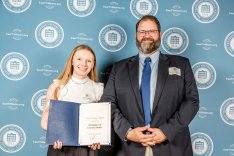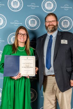 Whitney Butler was awarded the Teaching Excellence Award for creative and interactive lesson plans, organizing a yearly field trip to the Parthenon, State Capitol, and Country Music Hall of Fame, as well as her sponsorship of a local Historical Society in Newport, Tennessee.