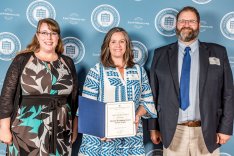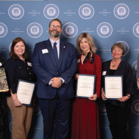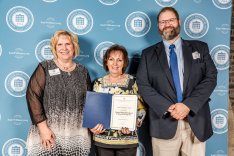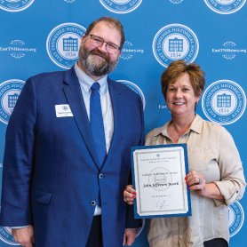 Karen Peterman received the Teaching Excellence Award for her years of teaching, mentoring, teacher workshops, and tours at Mabry-Hazen House in Knoxville, Tennessee.