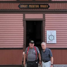 Julian Bankston (left) and Peter Merrill (right) received an award of distinction for the Historic Rugby Print Shop Restorations.