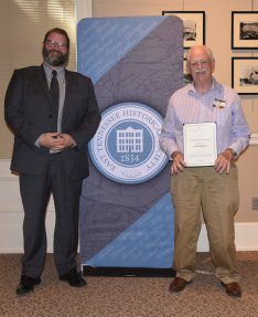 Bob Jarnagin was awarded the Community History Award for his ongoing community efforts, and articles devoted to local history, in Dandridge, Tennessee.