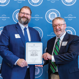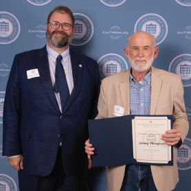 East Tennessee State University professor Ted Olson received the Ramsey Award for Lifetime Achievement. Olson is a professor in the Department of Appalachian Studies in East Tennessee State University’s College of Arts and Sciences, the author of numerous works in his field, and a music historian who has seven Grammy nominations. (photo credit: ETSU)